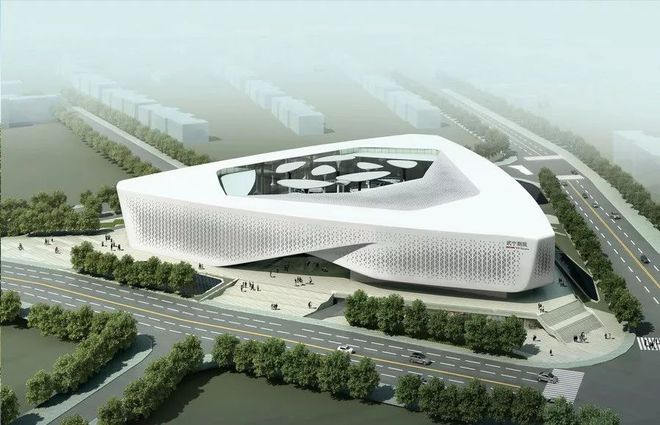 乳白色的金屬外墻、獨(dú)特的造型設(shè)計(jì)