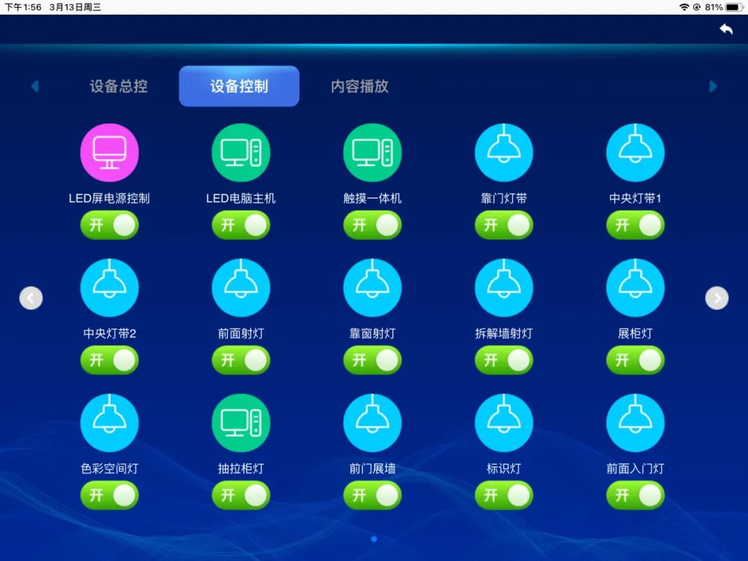 實(shí)現(xiàn)運(yùn)用ipad一鍵開館閉館、燈光全開/全關(guān)、播放控制等